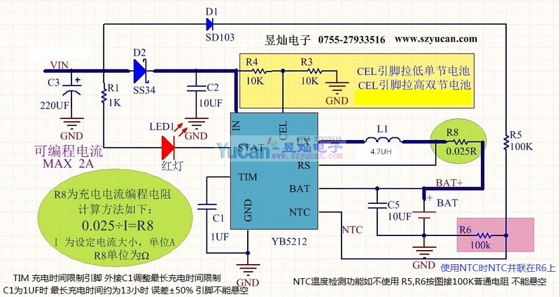 YB5212A是一種5-18V輸入,2A電流可支持單節(jié)和雙節(jié)鋰電池的同步Buck鋰離子電池充電器,適用于便攜式應(yīng)用。選擇引腳方便多單元充電。800khz同步降壓調(diào)節(jié)器集成MOS,超低導(dǎo)通電阻,實現(xiàn)高效、簡單的電路設(shè)計。